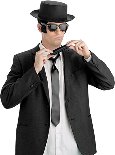 -. Brand : Fun World -. Color : Multi -. Department : mens -. Feature : Tie: Polyester. / Includes: Porkpie Hat, Harmonica, Tie, and Sun Glasses with Sideburns -. Label : Fun World -. Manufacturer : Fun World -. PackageQuantity : 1 -. ProductGroup : Apparel -. ProductTypeName : ADULT_COSTUME -. Publisher : Fun World -. Studio : Fun World -. Title : Fun World Men's Blues Brothers Accessory Kit (Adult)