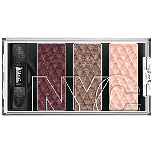 -. Binding : Health and Beauty -. Brand : N.Y.C. -. Color : Central Park Plums -. EAN : 0074170399721 -. Feature : Extreme color pay-off / Long lasting, stays vibrant all day / Soft and silky texture / Dual-ended applicator for a professional result / Dermatologist tested -. IsAdultProduct : 0 -. Label : N.Y.C. New York Color -. Manufacturer : N.Y.C. New York Color -. Model : 820D67550 -. MPN : NY785 -. NumberOfItems : 1 -. PackageQuantity : 1 -. PartNumber : NY785 -. ProductGroup : Beauty -. ProductTypeName : BEAUTY -. PublicationDate : 2014-12-16 -. Publisher : N.Y.C. New York Color -. ReleaseDate : 2015-01-20 -. Size : .16 OZ -. Studio : N.Y.C. New York Color -. Title : N.Y.C. New York Color HD Color Trio Eye Shadow, Central Park Plums, 0.158 Ounce -. UPC : 074170399721