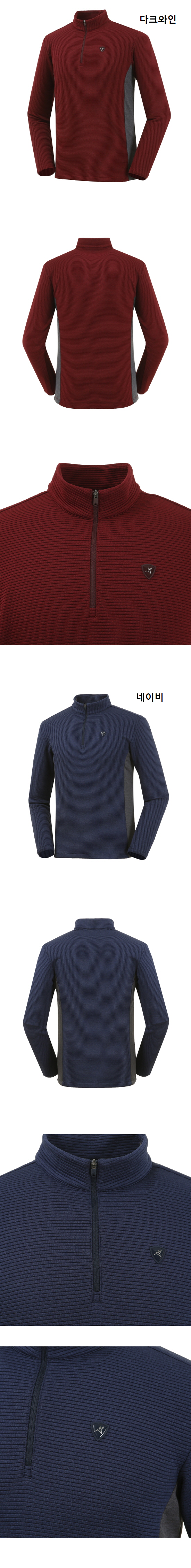 1.스트라이프 볼륨 자가드 소재를 사용한 겨울 집업티셔츠.