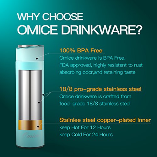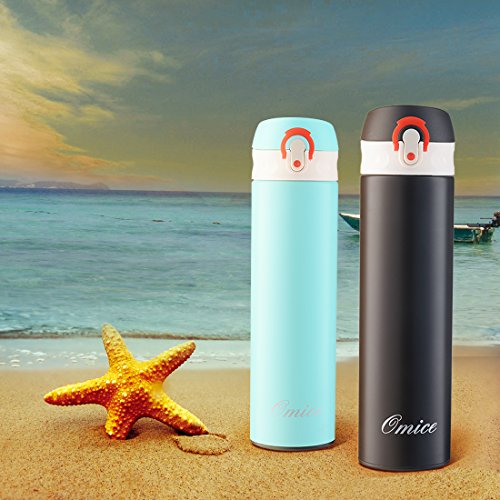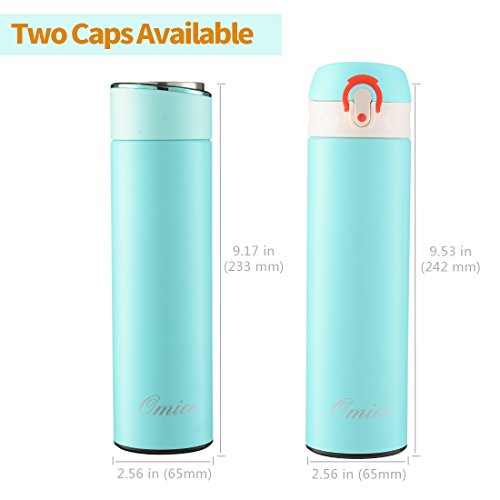 OMICE Vacuum Insulated Stainless Steel 17 Oz Water Bottle with 2 BPA Free caps - Double Wall Construction, Leak Proof Stylish Designed Bottle, Commuter Bottle
