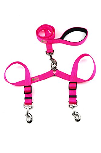 (DCBark)/Pet Supplies/Collars, Harnesses Leashes/DIRECT FROM USA/DCBark Double Dog Leash, Premium Quality No-Tangle Leash for 2 Dogs (M, Neo Pink)