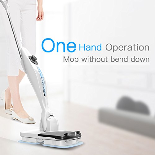 -. Feature : EASY USE Wide cleaning range and motion. Maneuver comfortably! Head lights for better visibility in covered or dark spaces. / LABOR SAVING Automatic sweeper and scrubber. Just power on and go! Multi cleaner mop which cleans wood and hard floors with a robust Sonic action scrubber, no force needed. Can also be used for carpet cleaning/ scrubbing (not vacuuming)! / JET SPRAY Powerful detergent jet spray, designed to clean stubborn stains. No water stains are left on the floor. Only little water is needed for cleaning, protect your wood floor and carpet. Easy fill water tank. Tank capacity is 2.5 US pt lqd (1.2 litres). / CORDLESS CLEANING with a maximum of 100 minutes of cordless operation (when fully charged). Efficient cleaning with 900 oscillations per minute. / GUARANTEE Buy with confidence as we offer 30 days trial period if you are not satisfied.