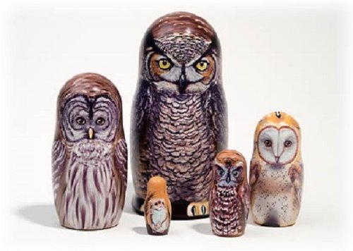-. Title : North American Owls 5 Piece Russian Wood Nesting Doll Matryoshka Stacking Dolls