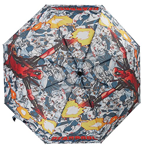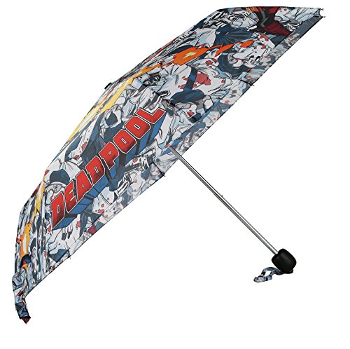 -. Brand : Marvel -. Color : multicolored -. Department : mens -. EAN : 6039056186462 -. Feature : Features comic-book design of Deadpool / Umbrella measures 35" in diameter when expanded / Folds down to 9.5" and includes umbrella sleeve. -. PackageQuantity : 1 -. ProductGroup : Apparel -. ProductTypeName : LAGE -. Size : One Size -. Title : Marvel Deadpool Adult Compact Umbrella