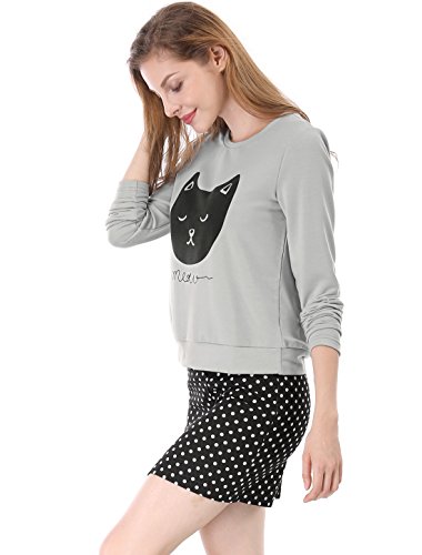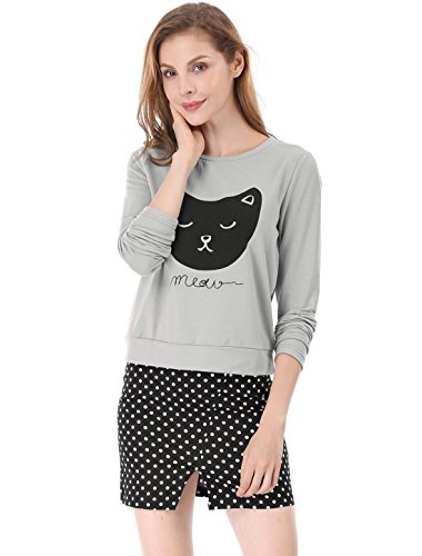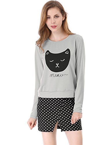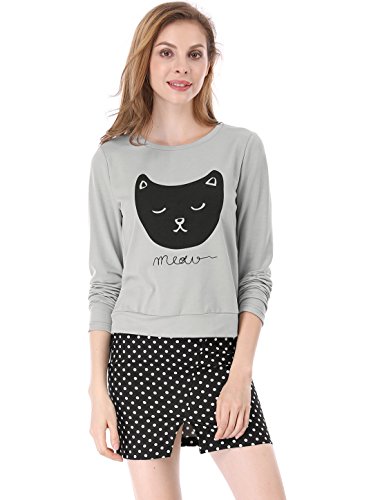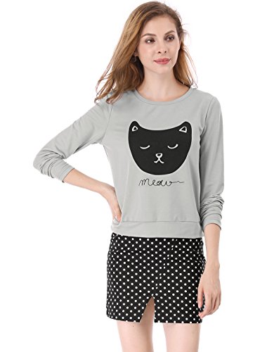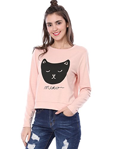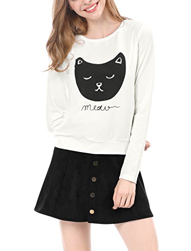 -. Title : Allegra K プルオーバー スウェットシャツ トレーナー トップス ショート丈 長袖 猫柄 可愛い レディース