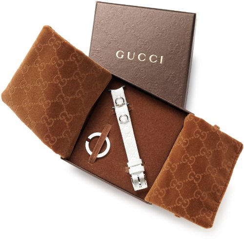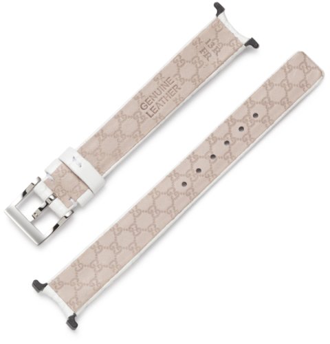 Feature : Stainless steel case / White leather bezel with green-red-green web at 4 o'clock / White Guccissima leather strap with ardillon buckle / Includes three interchangeable pieces that fit any U-play watch with a small case size / Quick and easy to change