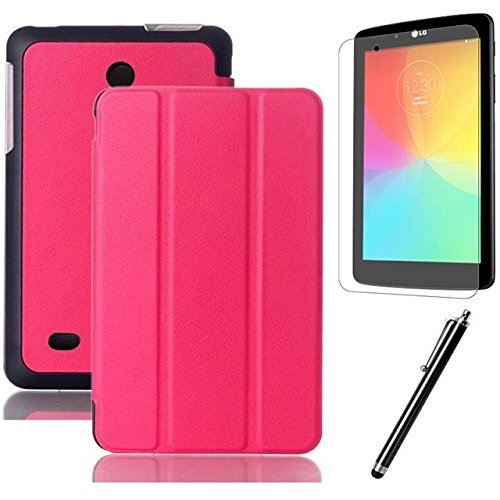 LG G pad 7.0 Case,PU Leather and Hard PC Back Smart Cover Flip Folio Case for LG G Pad 7.0 V400 / V410 7-Inch Android Tablet Cases and Covers with Screen Protector and Touch pen (3-Fold,Rose)