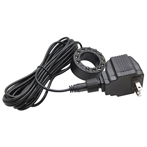 Ring diameter: 2" OD & 1.25" ID 12-LED light ring Cord length 16.5 ft 12V AC UL transformer ABS plastic light housing
