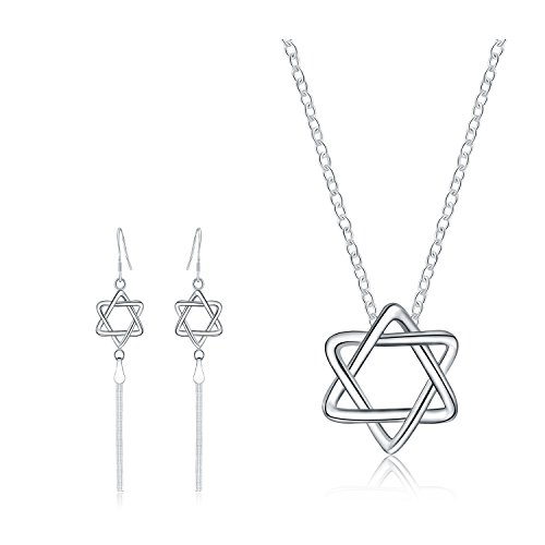 -. Title : 925 Sterling Silver David Star Pendant Necklace Drop Earrings Set For Women Teen Girls Prime Gift