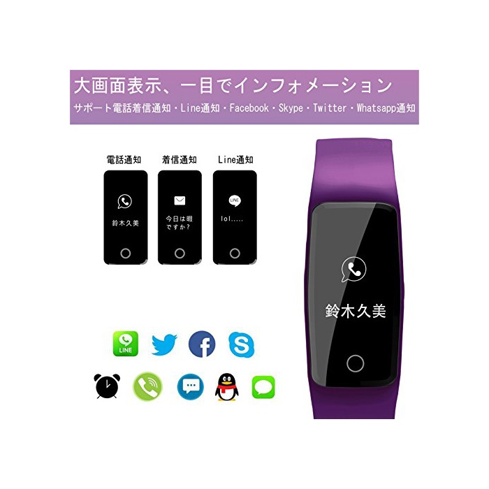 【편리성 Line전화 착신 통지】전화가 왔을 때에 발신자의 이름 또는ID가 OLED스크린으로 표시되어진동으로 통지를 알려 드리겠습니다.SMS,Facebook,Twitter,LINE,Skype,WhatsApp등의 소셜 어플리케이션부터의 통지를 서포트 하고, 동님에게 통지의 내용을 표시합니다.운동 중에서도 중요한 메세지가 놓치지 않습니다.