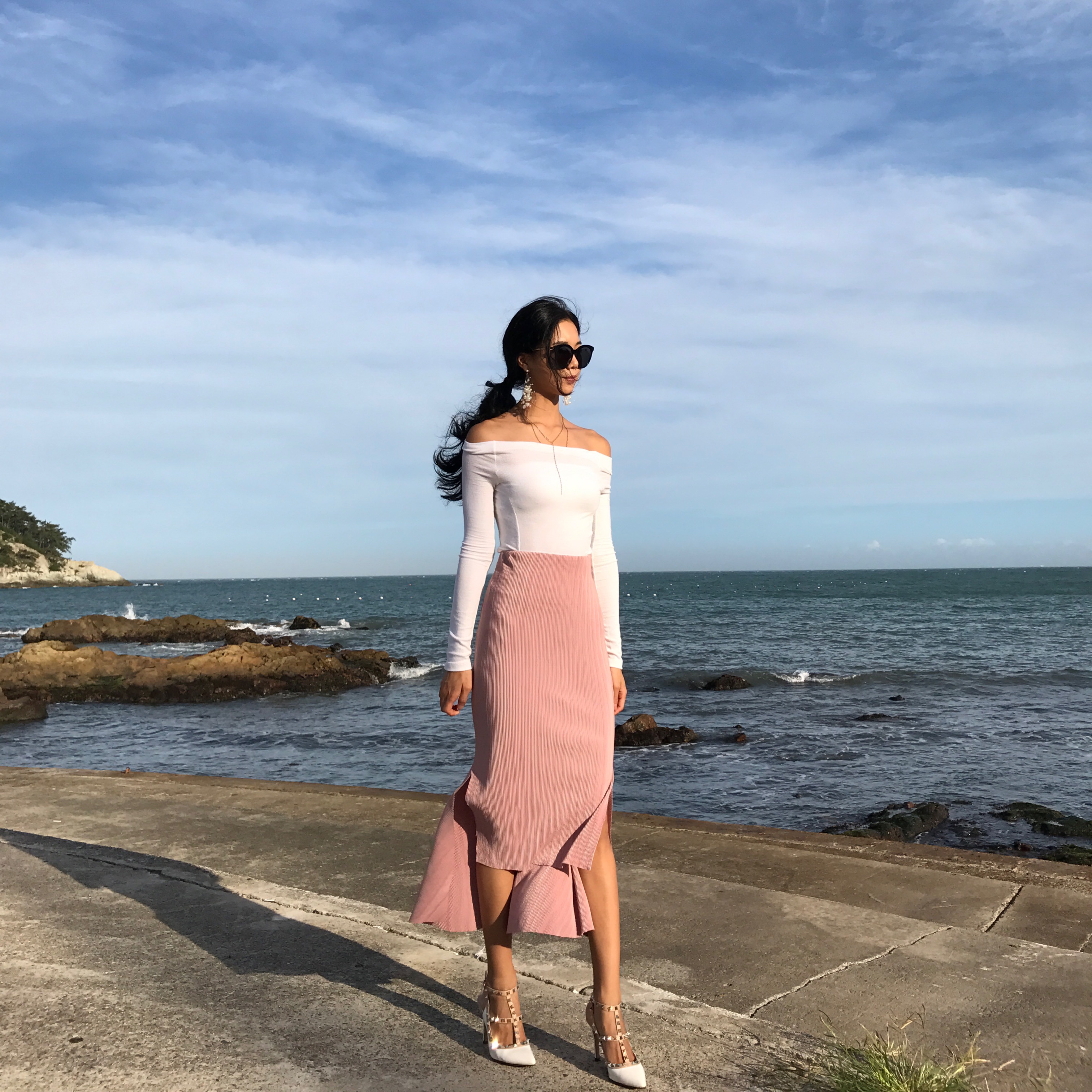 Pleated Mermaid Skirt Mermaid Wrinkled Autumn Skirt Frilly Women