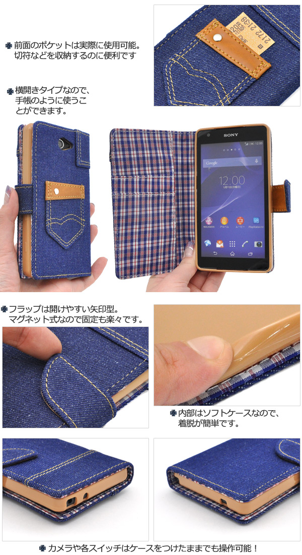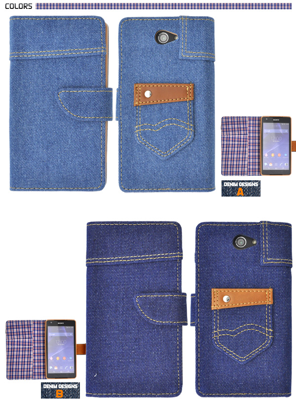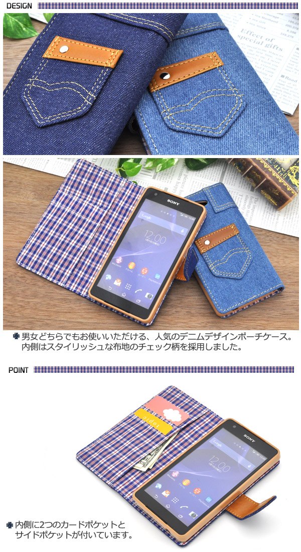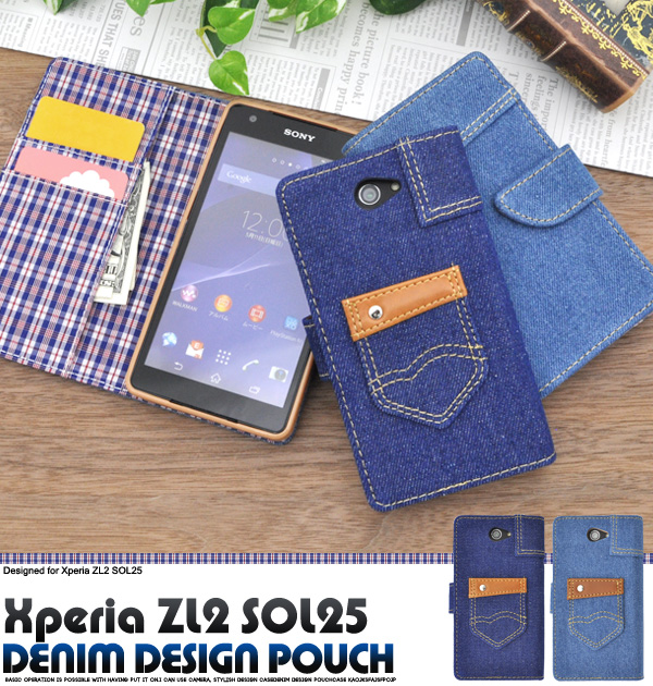 Xperia ZL2 SOL25用 デニムデザインケースポーチ(ジーンズデザイン)