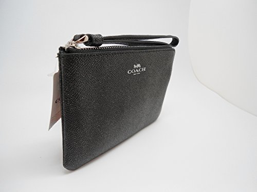 COACH F15154 CORNER ZIP WRISTLET IN GLITTER CROSSGRAIN LEATHER BLACK