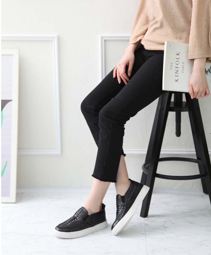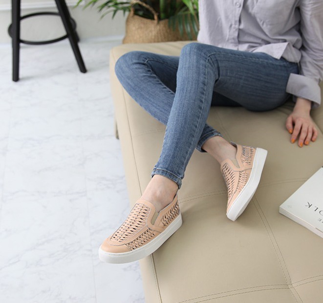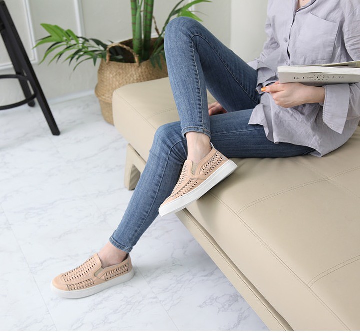 商品名:スリッポン レディース スニーカー シンプル 本革 レザー 2018 春 ファッション 靴 婦人靴