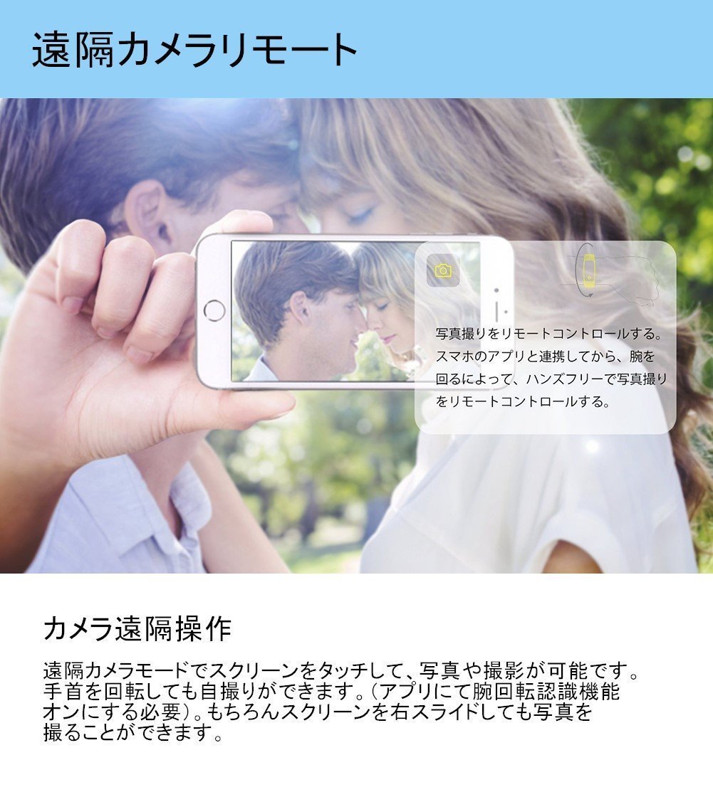 You can take pictures from the application and take self-taken with a long distance by operating the wrist.