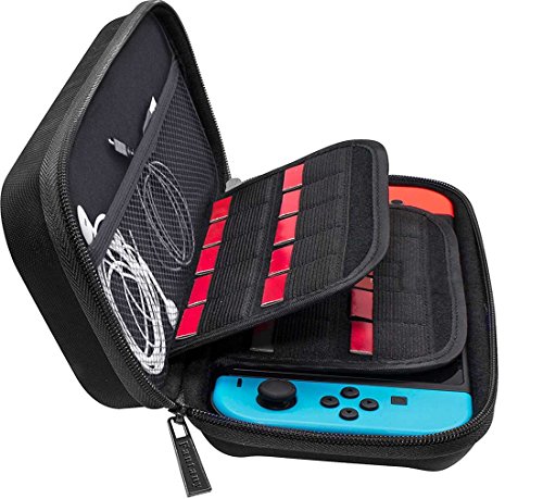-. Feature : Must Have Nintendo Switch carrying Case -- upgraded carrying hard case for Nintendo Switch, drops protect and anti-scratches, waterproof, portable and durable, lightweight, zipper to close and open design / Super Switch Travel Bag -- specifically for Nintendo Switch, built-in 20 game cart holders carry games on the go; convenient mesh pocket provide enough storage room for Switch game and Switch accessories, such as type-C cable, ear buds and etc / Perfect for On The Go Carrying -- not like others cheap material, our Switch case built in premium hardshell material, and flocking soft Inner design ensure waterproof, anti-drops, anti-scratch, ultra protection and elastic straps portability, perfect Nintendo console carrying case perfect on the go. / Ultra Compatibility-- portable size with enough storage room carrying on travel, easily carrying your Nintendo Switch and accessories, portable, durable and stylish design / 100% SATISFACTION GUARANTEE -- we take care of any product issue. If any defect occurred, please message us, we absolutely make things right for you