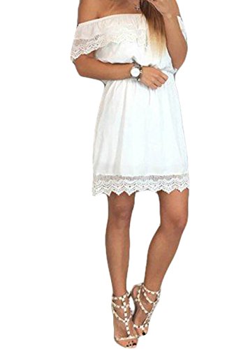 Please consult our brand's Womens Summer Sexy Off Shoulder Ruffles Mini Casual Dress dresses size standard before you choose a size.Size Information(Inch):S=US 2-4:Bust:45",Waist:26.7",Dress Length:31.5"