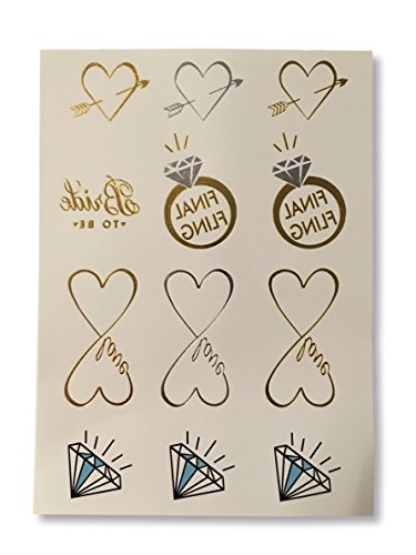 • MISS TO MRS WITH ALL MY BITCHES - Comes with 4 sheets of shining tattoos which include one whole page of shiny metallic peckers, "BRIDE TRIBE", "CHEERS BITCHES", our personal favorite trademarked "MISS TO MRS WITH ALL MY BITCHES" and more. We also threw in some diamonds, hearts and rings for your new sister in law.