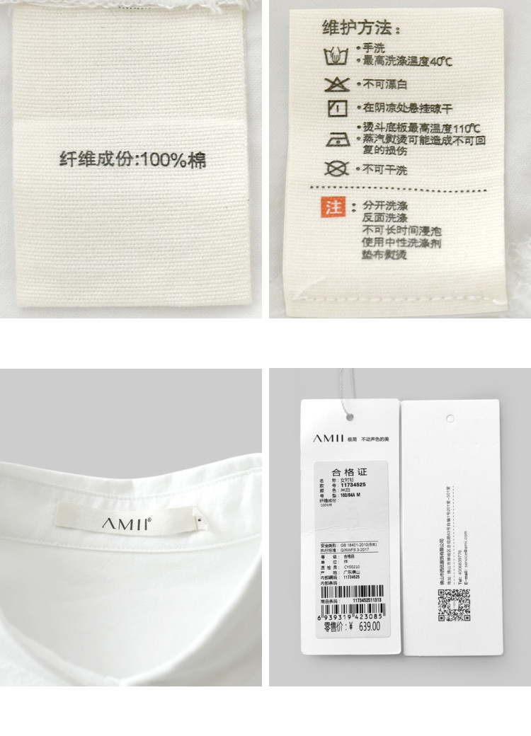 | 洗涤标准: | 不可浸泡悬挂晾干不可干洗110℃以下垫布熨烫不可漂白40℃以下手洗 |
