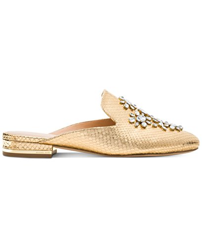 Product Description Brilliant metallic enhances a chic texture while shining beads complete the sophisticated look of these Edie slides from MICHAEL Michael Kors. 0