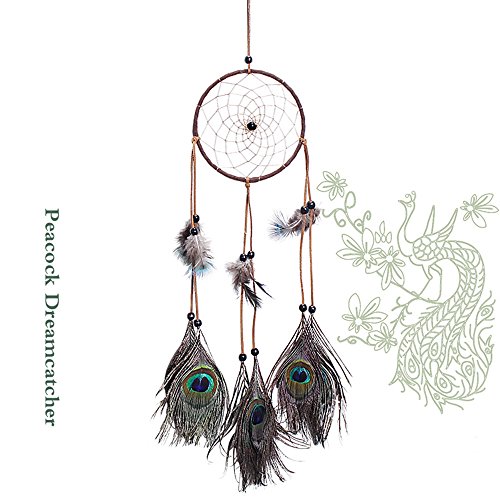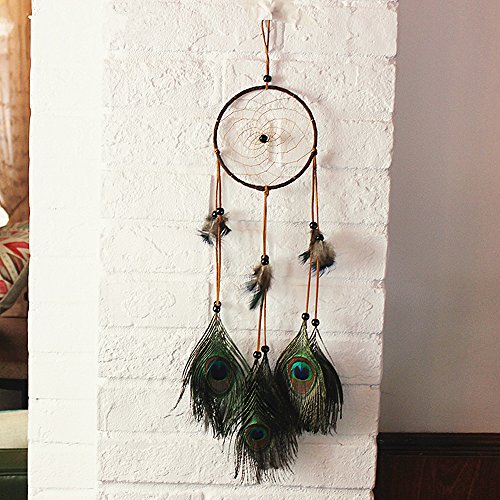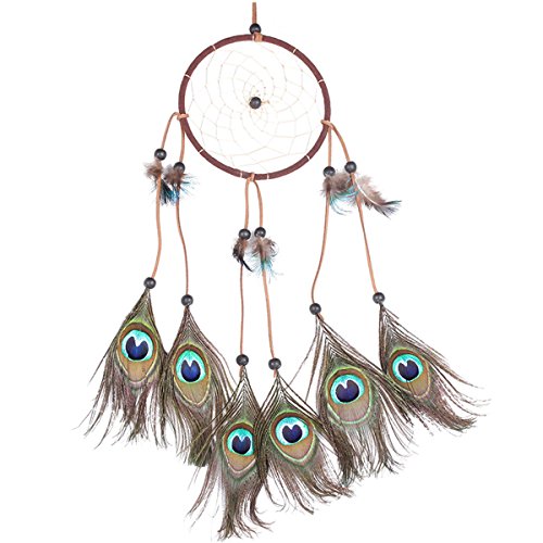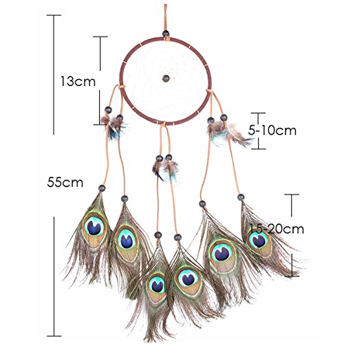 Dream Catcher ~ Handmade Traditional Feather Pendant Wall Hanging Home Decoration Decor Ornament Craft (Peacock)