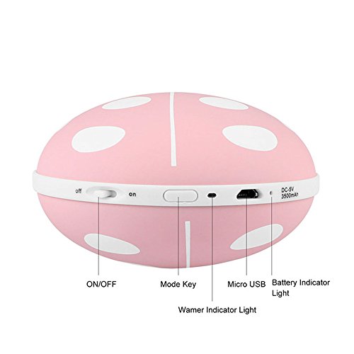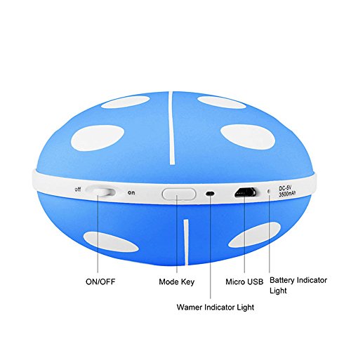 -. Feature : Cute Beatles design, Made of aluminum shell, efficiently prevent overcharge and short circuit; easy to control by long/short press. / Double-Side Hand Warmer: Approx. 5-6 hour for 50°C Low Temp. with Yellow indicator light on; 4-5 hour Approx. 60°C High Temp with White indicator light on. fFast heating up time (about 30s). / Power Bank: Built in 3500mAh battery capacity, sufficient power to charge your phones. Enough for daily use. / LED Night Light: Designed with 2 brightness modes for warm emergency light, High beam & Low beam warm white. / Small size for easy carry, Comfortable on hand, fit for hand size.Great for work, home, shop, sleep and other occasions. Come with elegant packaging, a warm gift for your friends in winter.