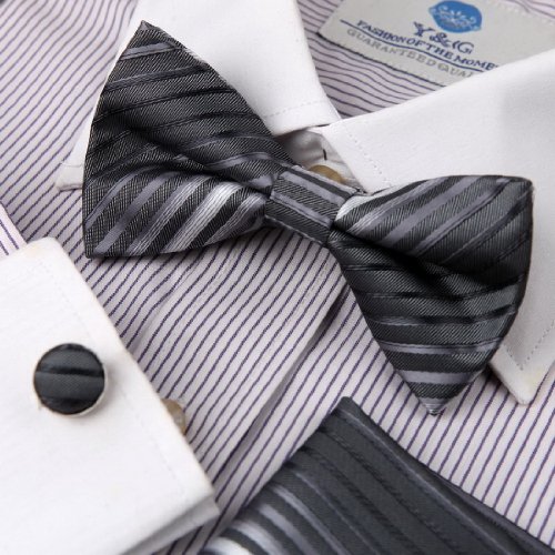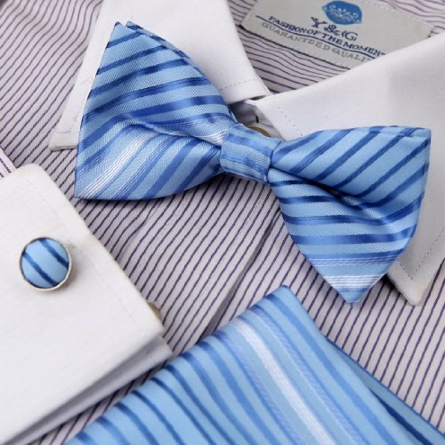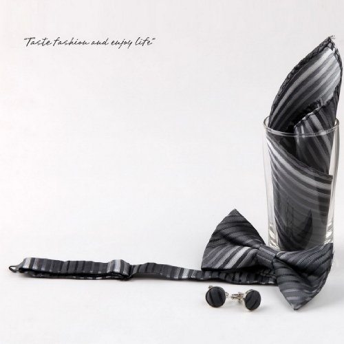 -. Title : EBC1A32 Gift For Him Stripes Silk Pre-tied Bow Tie Cufflinks Hanky By Epoint