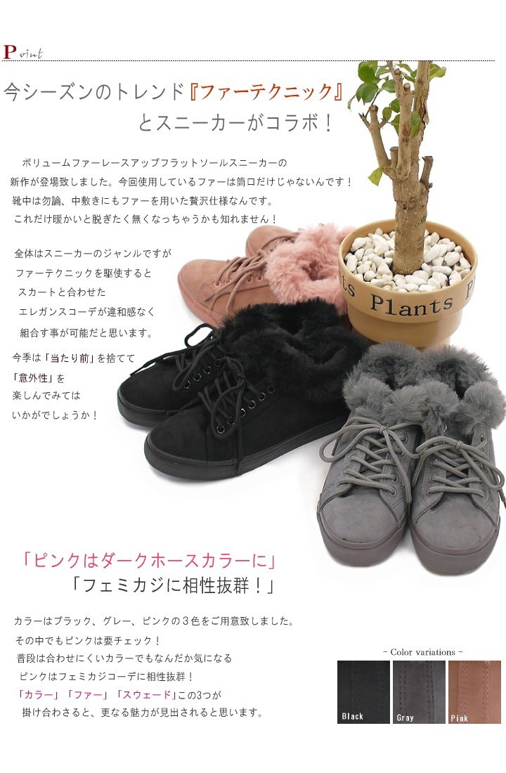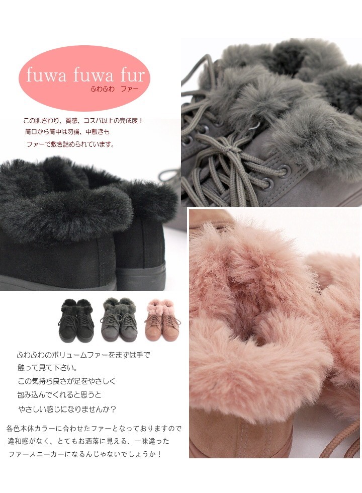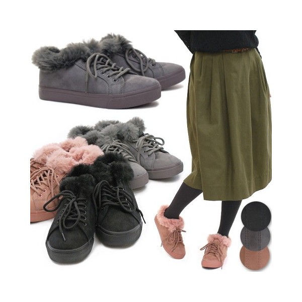 ボリュームファーがとってもかわいいレースアップ ローカットスニーカー!