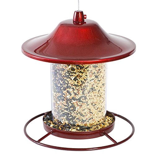 -. Binding : Lawn & Patio -. Brand : Perky-Pet -. EAN : 0078978648630 -. Feature : 2 lb. Seed capacity / Perch design allows birds to feed from multiple angles / Patented sure-lock cap system helps keep squirrels out / Sparkling red finish / For use with any type of seed -. Label : Perky-Pet -. Manufacturer : Perky-Pet -. Model : 312R -. MPN : 312R -. NumberOfItems : 1 -. PackageQuantity : 1 -. PartNumber : 312R -. ProductGroup : Lawn & Patio -. ProductTypeName : OUTDOOR_LIVING -. Publisher : Perky-Pet -. Studio : Perky-Pet -. Title : Perky-Pet 312R Red Sparkle Panorama Bird Feeder -. UPC : 078978648630 The perky-pet red sparkle panorama wild bird feeder is sure to attract many birds to your backyard. The innovative design of this feeder allows the seed to dispense into the tray and stops dispensing once the tray is full. As the birds continue to dine from the circular perch, the seed is replenished into the tray so it remains consistently full. This feeder also features the sure-lock cap system, an exclusive squirrel proof feature which ensures the lid stays put and squirrels can't get into the seed. The small panorama holds 2-pound of seed and features a sparkling red finish Remember to clean your wild bird feeders every two weeks with a mild soap and water solution.