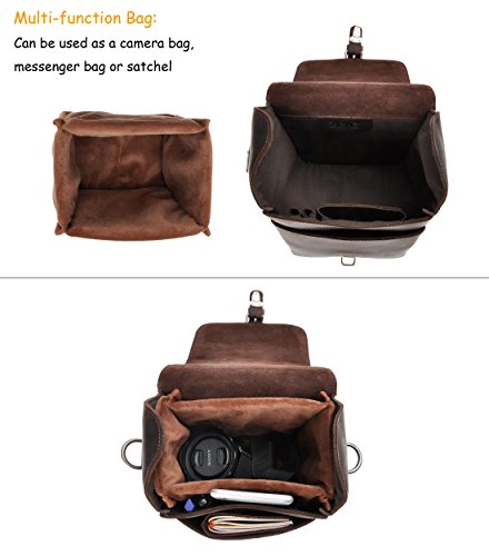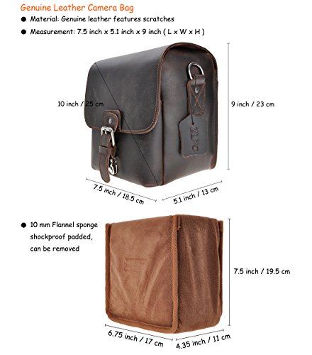 -. Feature : 【材質】:100%本革(塗装したトップレザーは弾力的になった。ユニックなところは擦りことにある。この塗装したトップレザーは空気中の水、ユザーの汗などを吸収して、あなたの唯一の皮を養うと呼ばれる。) / 【収納】:主ポケットはカメラを収納する。展示写真中のカメラはNikon D90だ。インナーポケットは、携帯電話を収納する。2つのペンスロット。フロントオープンポケットは携帯電話、財布、ノート、レンズキャップ などを収納する / 【高品質ハードウェア】:アンティークシルバーのハードウェアは普通のハードウェアより、もっと硬くて長持ちだ。例えば、ショルダーベルトのバックルは色落ちやすくない、スナップ閉めはバッグを閉めたら、バラバラと開かない。同時にアンティークシルバーのハードウェアはとてもファッションだ。 / 【ギフト用場合】:男女適用のデザインで、写真者、旅行愛好者、彼氏、彼女などへの誕生日プレゼントのいい選択肢。クリスナス、新年、お祝いなどの場合にもプレゼントとして送られる。 / 【サイズ】:表:長さ19cmⅹ幅19.5cmⅹ高さ13cm 裏:長さ17cmⅹ幅17.5cmⅹ高さ11cm 【使用】:小型のカメラ愛好者ですか?このバッグはあなたにピッタリ!防振のクッションを取り外したら、近所に旅行とか、平素の日常生活とかに使える。うちのクッションは取り外し可能で、区切りもレンズのサイズに適用するため、取り外し可能だ。ショルダーベルトは身長により、調節できる