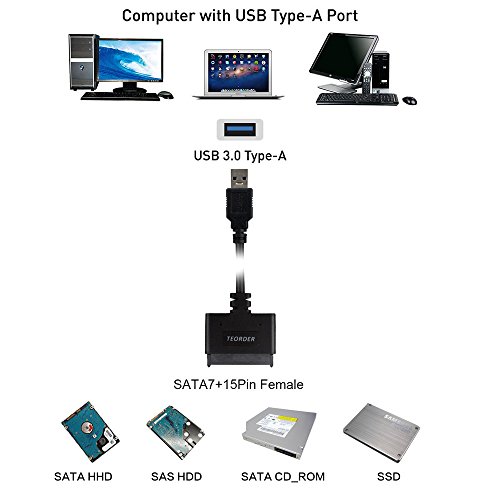 Teorder SATA to USB Adapter Cable Universal Serial Bus 3.0 Series ATA III Adaptor with UASP USB-IF 22Pin(7Pin+15Pin) 21'' Converter for 2.5" Hybird Hard Disk HHD HDD SAS ODD and SSD