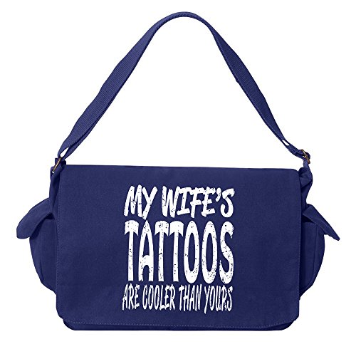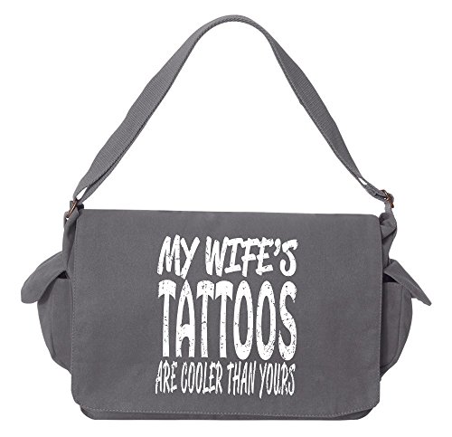 Studio : Tenacitee Publisher : Tenacitee Binding : Personal Computers Product Description Wife's Tattoos Brushed Canvas Messenger Bag by Tenacitee. Express yourself! No boring bags here, this messenger bag is custom printed in our Oklahoma shop just for you. Made of 12oz 100% soft brushed cotton canvas this bag is perfect for telling the world what you think while you're out and about town. We use the latest Direct to Garment printing technology for a vibrant and soft print with less wasted ink. The bag is machine washable, has several inside zippered pockets, an interior key leash hook, and a 2" wide adjustable shoulder strap. The bag measures approximately 16"x11.5"x4.75". 0