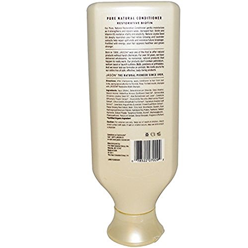 This bundle includes one JASON Biotin shampoo and one JASON Biotin conditioner, each bottle is 16 fl. oz. About the Biotin Shampoo Our Restorative Shampoo gently cleanses as it restores healthy strength to weak, damaged hair. The thickening properties Biotin and Vitamin B5Õs revitalize hairÕs elasticity. Ginseng and lavender extracts help repair split ends and minimize future breakage. Fortified with energy, your hair looks healthier and grows stronger. About the Biotin Conditioner Our Restorative Conditioner gently moisturizes as it strengthens and repairs weak, damaged hair. Biotin and Vitamin B5 revitalize vitality and elasticity. Jojoba Seed Oil deeply nourishes your hair while Ginseng and lavender extracts help repair split ends and minimize future breakage. Fortified with energy, your hair appears healthier and grows stronger.