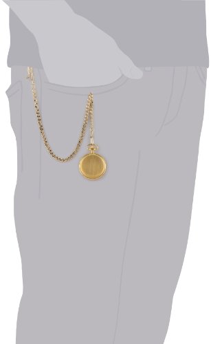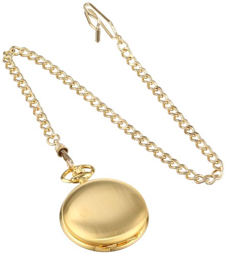 -. Feature : 14k gold-plated satin finish brass 41mm hunter case with a matching curb chain / Skeleton dial with roman numerals / 17 jewel mechanical movement / Deluxe gift box