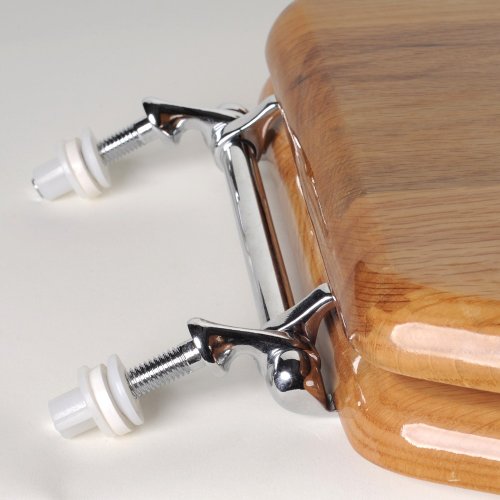 -. Title : Comfort Seats C1B1E-17CH Designer Solid Wood Toilet Seat with PVD Chrome Hinges, Elongated, Oak