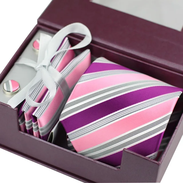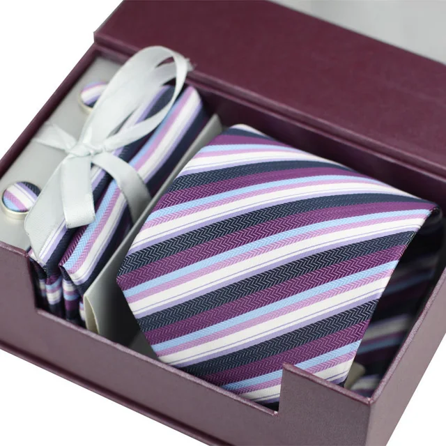 | [해외]히히 그랜드 높은 품질의 넥타이 남성 웨딩 패션 스트라이프 목에 넥타이 세트 캐주얼 아저씨 목에 두르는 PLD050 |