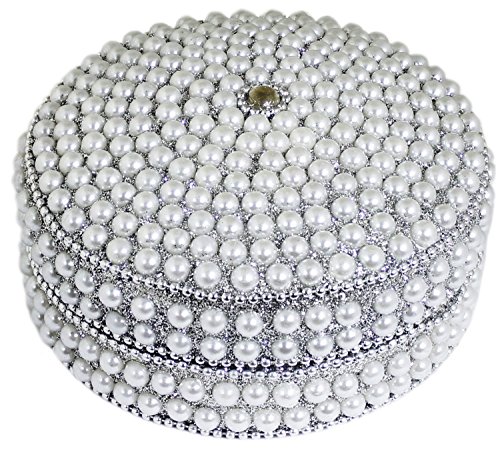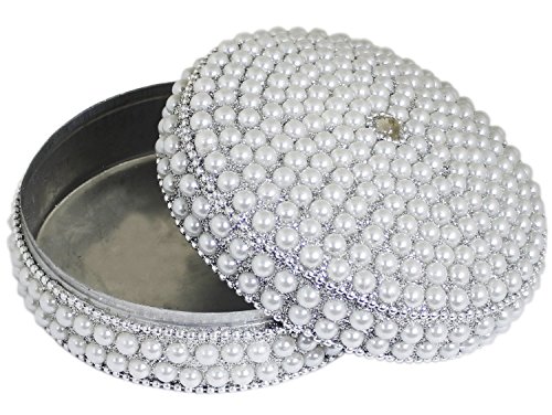 Christmas Gift Jewelry Decorative Box Silver Round Beaded Jewelry Box for Necklace, Earrings, Ring and Chain -Diameter 4 Inch