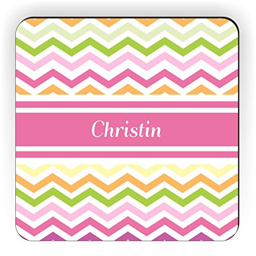 Rikki Knight "Christin" Pink Chevron Name Design Square Fridge Magnet