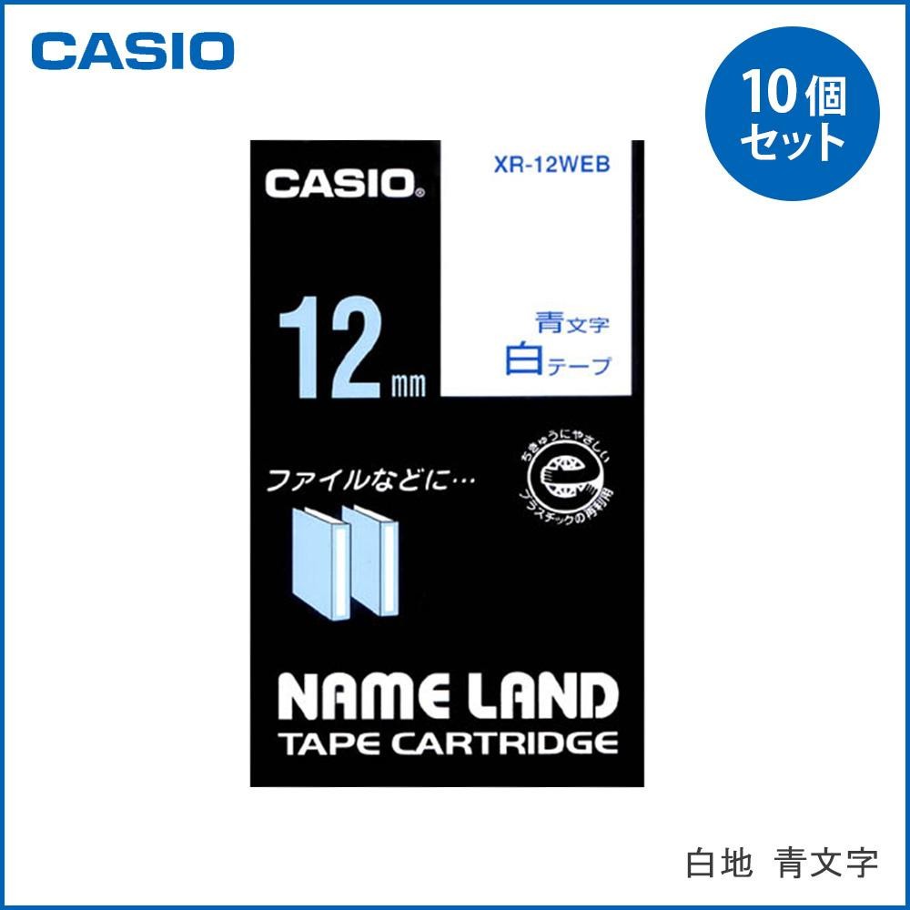 「ネームランド」用テープカートリッジです。アルバムやファイルの見出しにぴったりの12mm幅。 製造国:中国 素材・材質:樹脂 商品サイズ:テープ:長さ8m、幅12mm(1個あたり) 仕様:【色】テープ:白、文字:青 セット内容:10個セット ※サプライヤー直送品【商品名】CASIO カシオ ネームランドテープ12mm幅 (白地/青文字) XR-12WEB ×10個セット