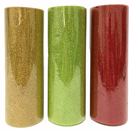 Charmed Christmas glitter tulle in apple green, red and gold 6 inch by 10 yards ( 30 yards total )