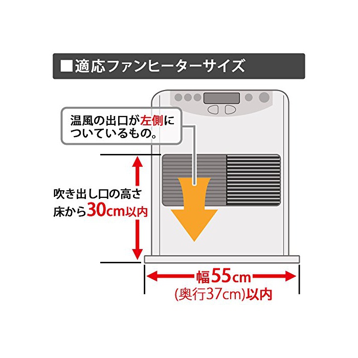 적응 사이즈:폭55.0×(길이)깊이37.0cm이내의 석유 팬 히터 전용(취출구가 좌측상부터의 높이가 30cm이내인 것이 제일이다/석유 스토브 사용 불가)