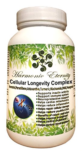 -. Title : Cellular Longevity Complex, All In One With Pterostilbene,,Turmeric,Trans Resveratrol,DMAE,Astaxanthin, Niacinamide, Pomegranate, Vitamin A, Vitamin C, vitamin E and Black Pepper, 90 VC