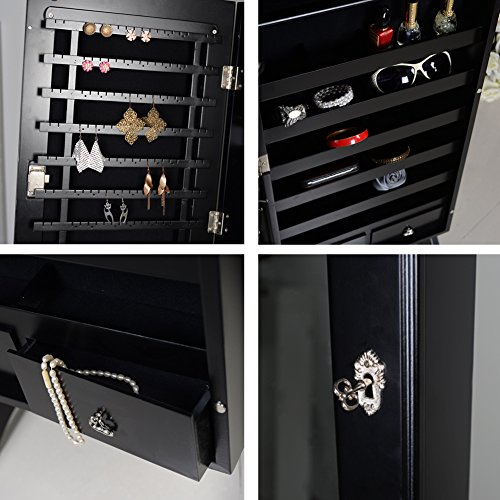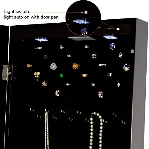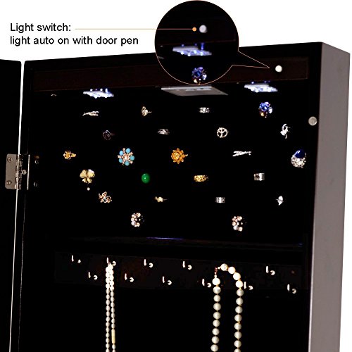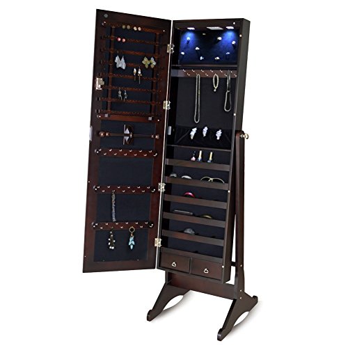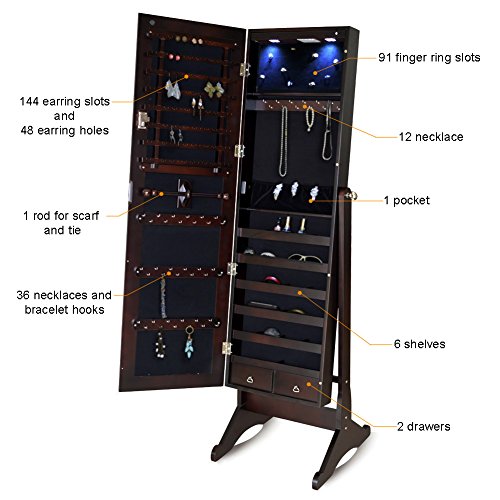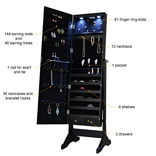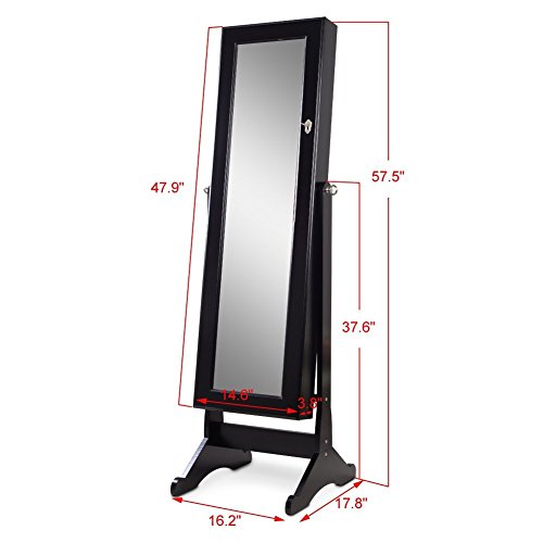 -. Binding : Kitchen -. Brand : GLS -. Feature : MDF wood and 4-positions adjustable glass mirror / With long lasting LED lights operated by batteries (not included batteries) / Provide lots of divided space for storing jewelry / Mirror dimensions:42.6"*9.5" / Overall dimensions:57.5"H*14.6"W*17.8"D -. Label : Shenzhen Good Craft co.,Ltd -. Manufacturer : Shenzhen Good Craft co.,Ltd -. ProductGroup : Home -. ProductTypeName : HOME -. Publisher : Shenzhen Good Craft co.,Ltd -. Studio : Shenzhen Good Craft co.,Ltd -. Title : GLS Free Standing Mirrored Jewelry Armorie Cabinet with LED light