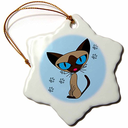 3dRose LLC Cute Siamese Cat Pawprint Design 3-Inch Snowflake Porcelain Ornament