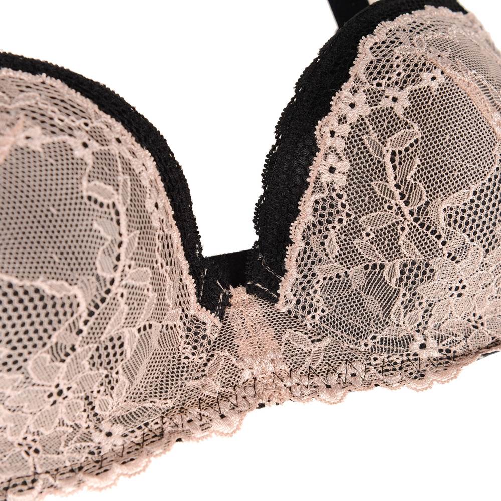 베이지와 블랙 매칭이 돋보이는 고혹적인 분위기를 선사하는 레이스 브라.