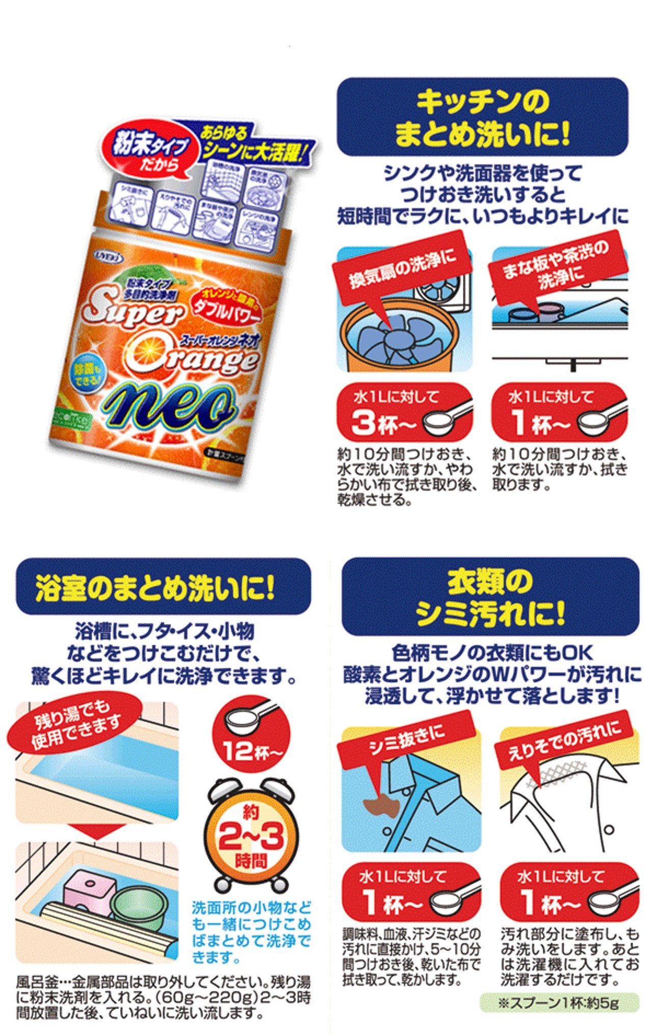 W cleaning effect of oxygen and enzyme + Orange oil blending, it is strong against dirt and you can use it widely for versatile use.
