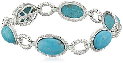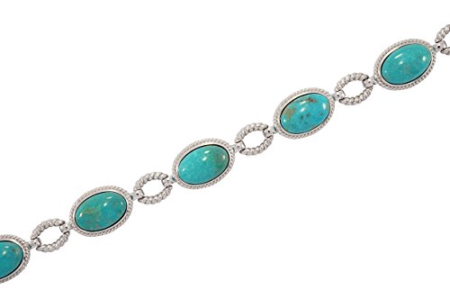 Sterling silver bracelet featuring 6 oval genuine stabilized turquoise stones with rope textured links