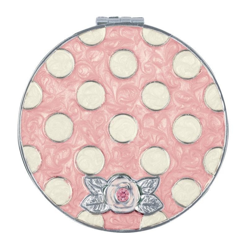 | ドット柄が可愛い!2倍鏡付きの小さなコンパクトミラー! |