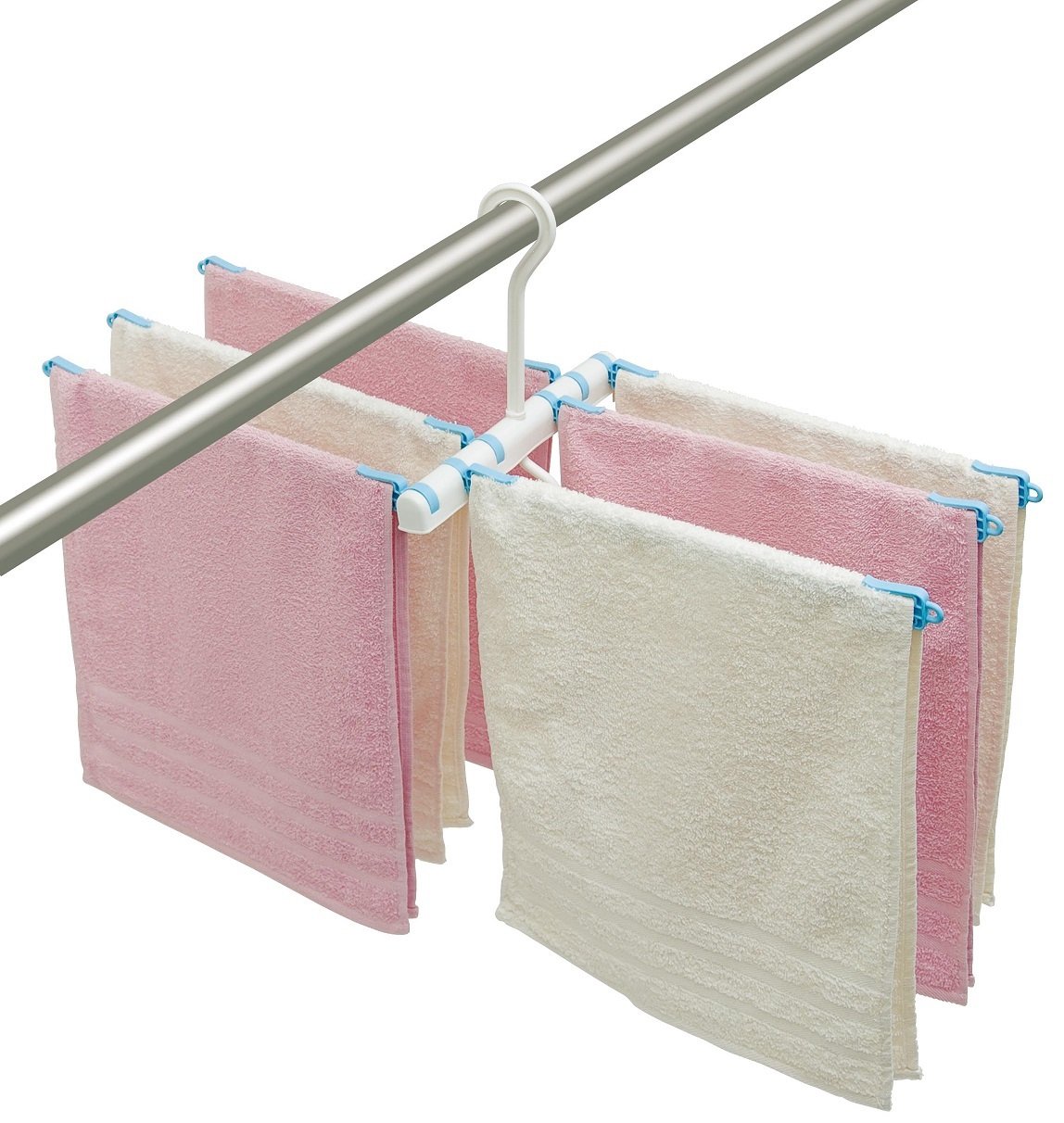 "Towel hanger six rings" is a functional hanger that can hang 6 towels using long push or wall hook in the room as well as a hook.