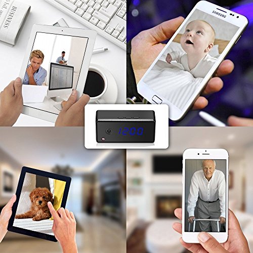 WIFI CONNECTION& MULTIPLE USES: Unique alarm clock design, it is a Wireless Camera with alarm clock function. It can be accessed via Wi-Fi, you can using your Smartphone, Tablet, PC to check your monitoring, even you are in kitchen, office or on business. Able to be monitored by one or multiple devices at the same time, through the password identity feature.
